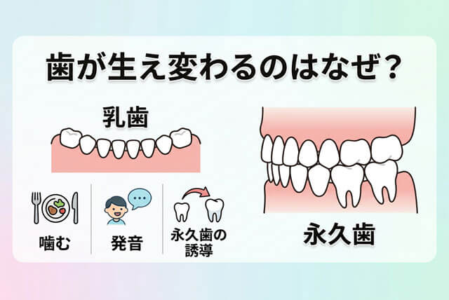 歯が生え変わるのはなぜか、乳歯から永久歯へ移り変わる仕組みについてご存じでしょうか。歯の生え変わりのメカニズムを詳しくは知らないという方も多いかもしれません。